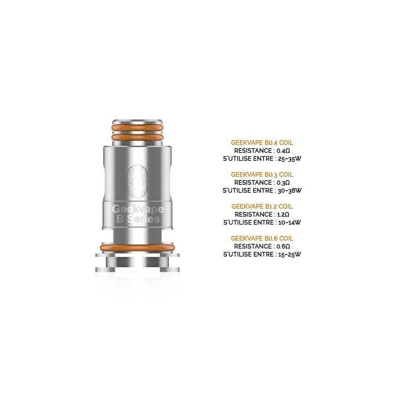 Les résistances B Coil Geekvape offrent une expérience de vapotage premium pour vos kits Aegis Boost, Aegis Hero et clearomiseur Z Nano. Disponibles en pack économique de 5 pièces avec cinq valeurs de résistance (0.2Ω, 0.3Ω, 0.4Ω, 0.6Ω et 1.2Ω), elles s'adaptent parfaitement à tous les styles de vapotage pour des saveurs exceptionnelles et respectueuses de la réglementation française.