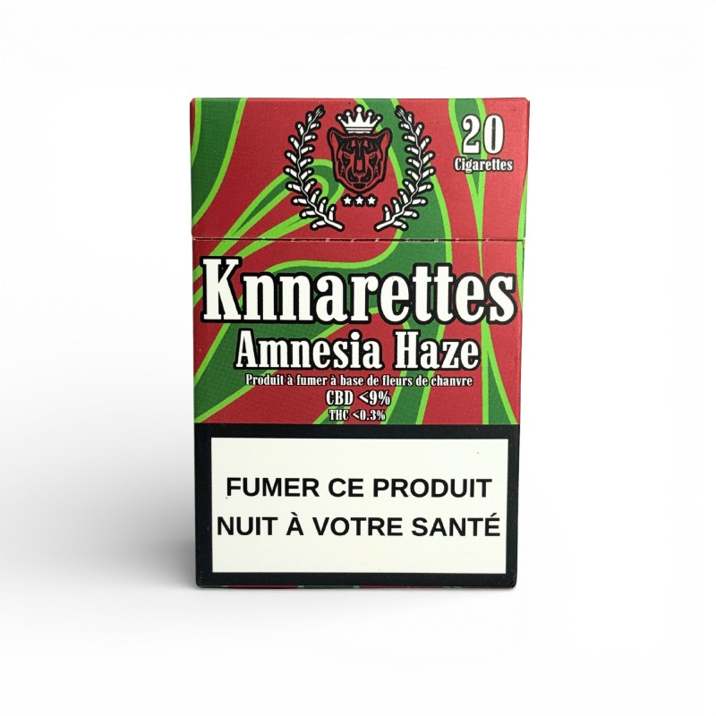 Chaque paquet de cigarettes CBD Amnesia Haze KNNARETTES contient exactement 20 cigarettes pré-roulées, prêtes à consommer pour votre confort et praticité.