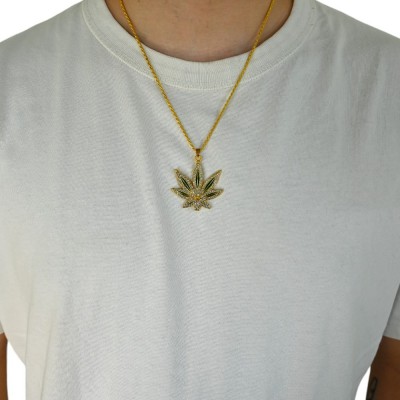 Commandez votre collier pendentif cannabis doré maintenant - Livraison rapide depuis VroShops CBD !
