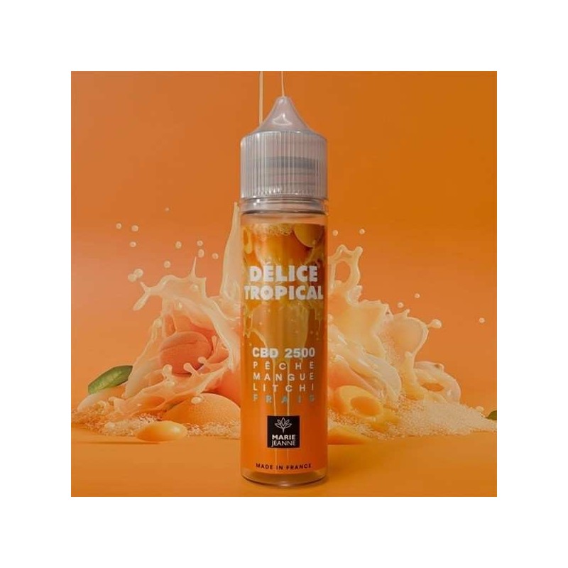 Évadez-vous sous les tropiques avec l'e-liquide CBD Délice Tropical Marie Jeanne 50ml, un mélange raffiné de pêche, mangue et litchi. Cette création française premium offre une expérience vape authentique avec ses concentrations 1500mg ou 2500mg de CBD, totalement sans THC. Son ratio PG/VG 70-30 optimal garantit une restitution parfaite des saveurs exotiques et une production de vapeur équilibrée pour un plaisir tropical à chaque bouffée.