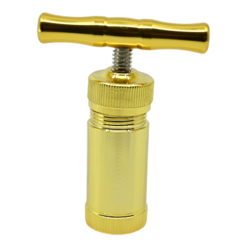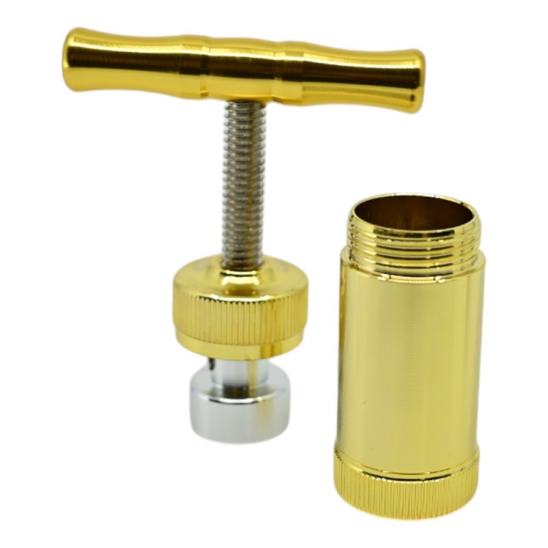 Cette élégante presse à pollen dorée en zinc est l'outil idéal pour une extraction CBD optimale. D'une hauteur de 8,6 cm avec un cylindre de 2,8 cm de diamètre, elle allie fonctionnalité et esthétisme premium. Son revêtement doré lui confère durabilité et aspect haut de gamme. Compacte et efficace, elle convient parfaitement aux particuliers comme aux professionnels recherchant un outil d'extraction performant à prix attractif.