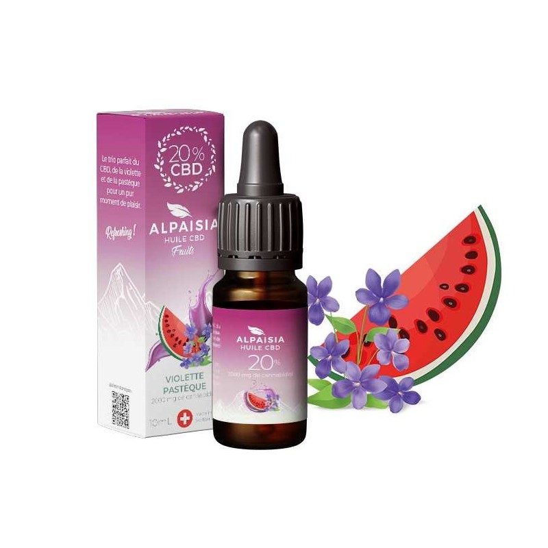 Découvrez l'huile CBD 20% broad spectrum ALPAISIA aux saveurs originales de violette et pastèque. Cette huile française premium combine l'efficacité du CBD broad spectrum avec des arômes rafraîchissants et floraux. Extraite par CO2 supercritique, elle préserve tous les cannabinoïdes bénéfiques tout en éliminant le THC. Formulation vegan dans un flacon de 10ml avec pipette pour un dosage précis et une utilisation optimale.