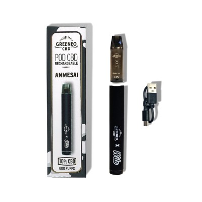 Découvrez le vape pen CBD Anmesai GREENEO, une solution rechargeable et prête à l'emploi pour une expérience vapotage premium. Équipé d'une batterie 500mAh et d'une cartouche préremplie 0.5ml au CBD 10%, ce dispositif sans nicotine offre la saveur Anmesai inspirée de la variété Amnesia. Conception réutilisable avec chargeur USB-C inclus pour une utilisation pratique au quotidien.