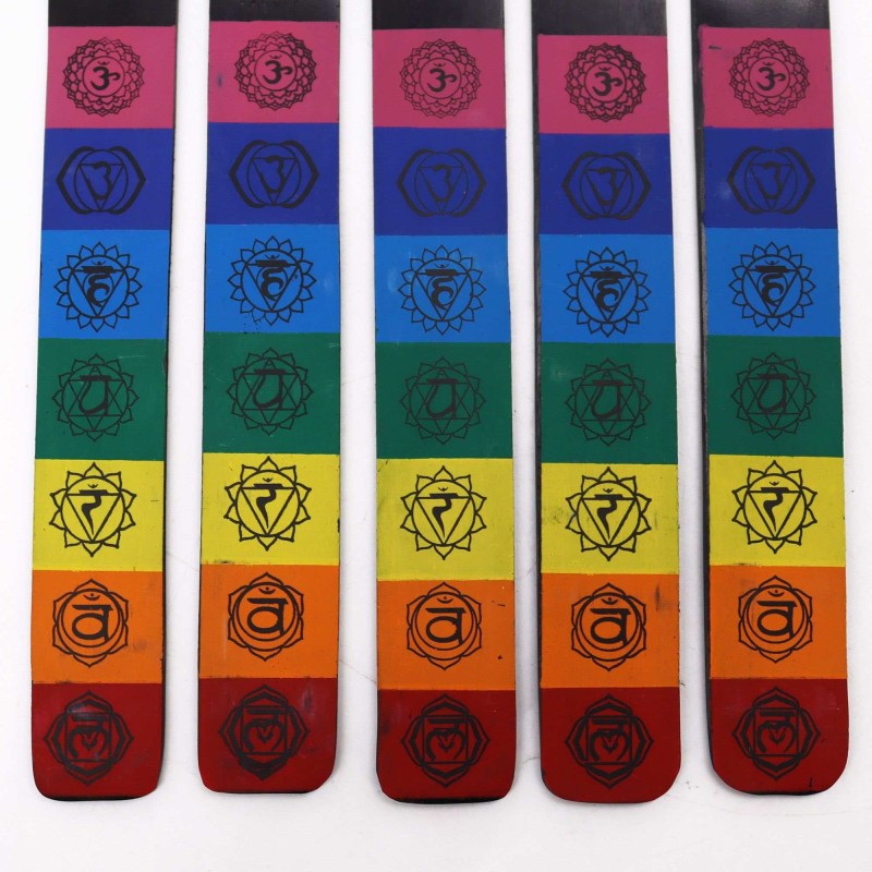 Transformez votre espace de méditation avec ce magnifique porte-encens aux couleurs des 7 chakras. Fabriqué en bois de manguier de qualité supérieure, cet accessoire spirituel capture élégamment les cendres tout en apportant une dimension énergétique à vos rituels. Son design coloré représente les centres d'énergie du corps pour favoriser l'équilibre et l'harmonie intérieure lors de vos séances de relaxation.