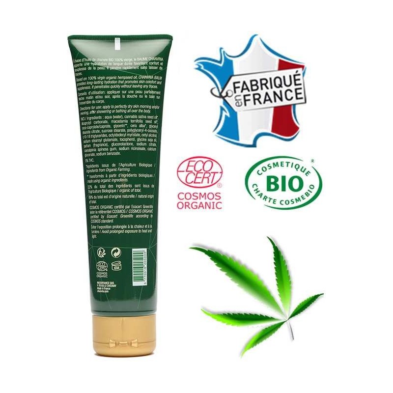 Le baume corps huile de chanvre bio CHANVRIA offre une hydratation intense pour votre peau. Certifié ECOCERT avec 99% d'ingrédients d'origine naturelle et 23% d'ingrédients biologiques, ce soin apaise et protège les peaux irritées. Sa formule contient une huile de chanvre bio vierge riche en Omega 3 et Omega 6, créant une barrière protectrice naturelle. Parfum léger aux notes végétales pour une expérience sensorielle agréable.