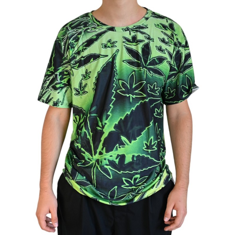 Le T-shirt Cannabis Psychédélique Vert combine style audacieux et confort optimal. Son design unique aux motifs de feuilles de cannabis sur fond vert éclatant attire tous les regards. Fabriqué en tissu doux et respirant composé de 95% polyester et 5% spandex, il offre une sensation agréable toute la journée. Disponible en trois tailles M, L et XL pour s'adapter parfaitement à votre morphologie et vos préférences de coupe.